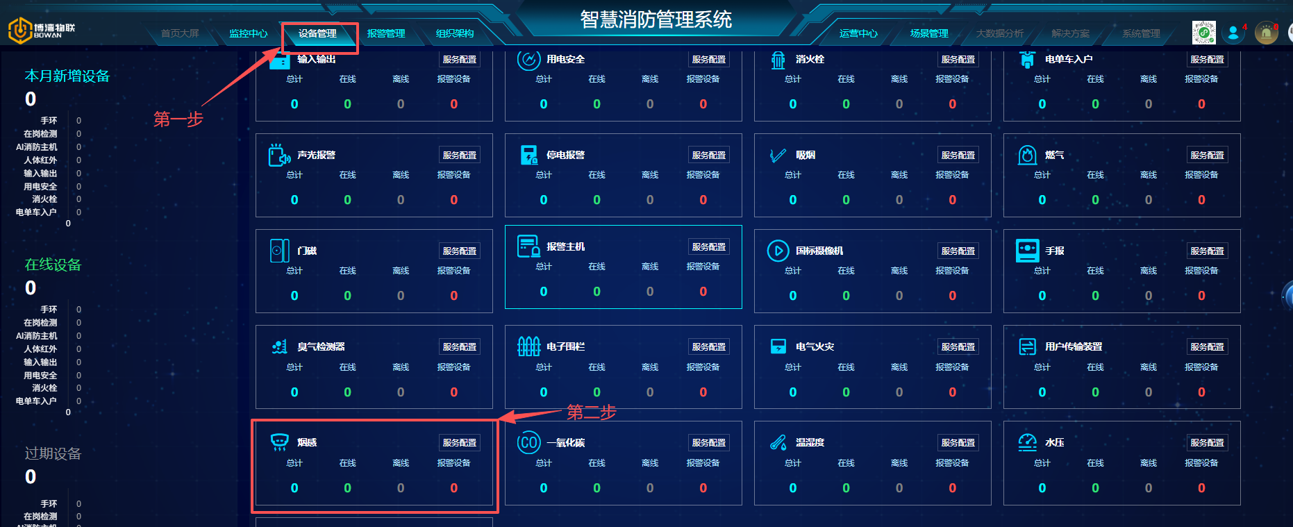 点击设备管理,找到需要添加的设备类型